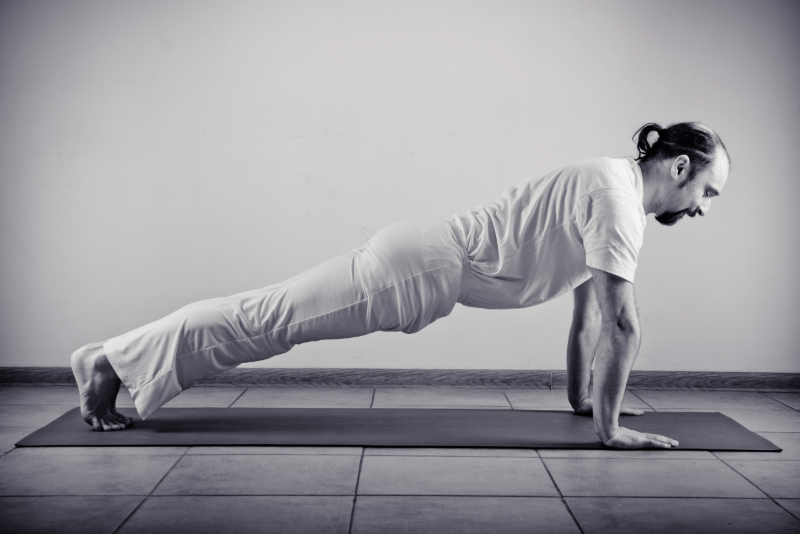 Чатуранга дандасана на прямых руках — так называемая планка и является для меня своеобразной основой технологического процесса. Кто бы, как бы, и когда бы не попадал ко мне — как минимум через пол года способен стоять в планке уверенно, долго и не как нибудь. Конечно упорам на руках приходится уделять особое внимание, ведь ничего не происходит как-то само собой. Раз и получилось — это результат долговременных усилий и в какой-то степени мотивации. В этом уражнении работает все тело. Практика планки формирует устойчивый фундамент к обретению нужных навыков, выносливости и силы для удержания того или элемента. Конечно можно возразить что смысл практики далеко не в освоении стоек на руках или любого другого положения. Разумеется я в курсе. Но не утвердившись в основах того как работает тело будет сложно постигнуть хитросплетения лабиринтов ума и понять архитектуру его работы.